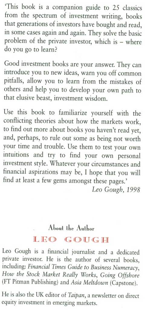 Insights from the Greatest Investment Books of all Time, index, xviii & 238 pp, black boards in d/w, in near fine condition, Pitman Publishing for Financial Times 1998