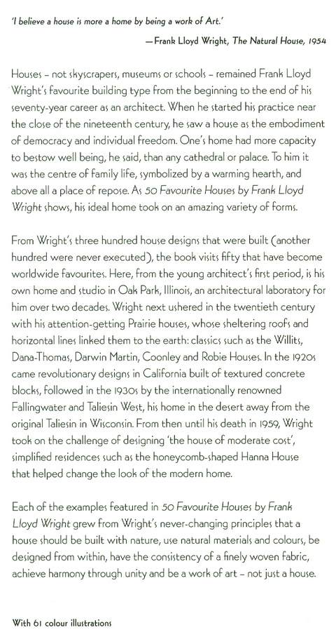 Each house has at least one colour photograph with a long descriptive caption (see specimen below), introduction, bibliography and index, 128 pp, decorated boards (see picture below) in d/w, d/w a little rubbed at extremities and a little creased at top edge, slight marks to front endpapers, otherwise in very good condition, Thames & Hudson 2000