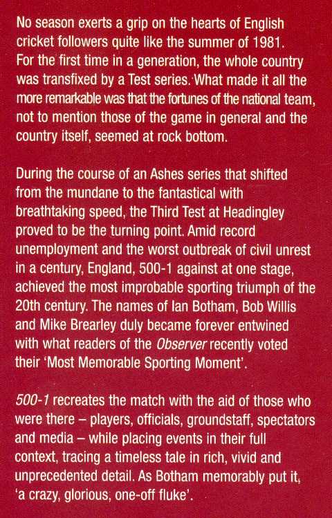 The Miracle of Headingley ’81, illustrations from colour and b&w photographs, statistical tables in text, bibliography and index, red boards in d/w, presentation inscription on front endpaper, otherwise in fine condition, BBC Worldwide 2001, £5.00