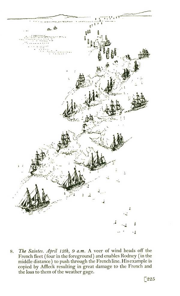 B&w portrait frontispiece, eight pages of diagrams of actions at Martinique and the Saintes (see specimen picture below), location map on endpapers, glossary, bibliography, index, vi & 280 pp, blue cloth (no d/w), spine a little faded and rubbed at edges, top of front board bumped at hinge with small tear to the cloth, otherwise in very good condition, Peter Davies 1962