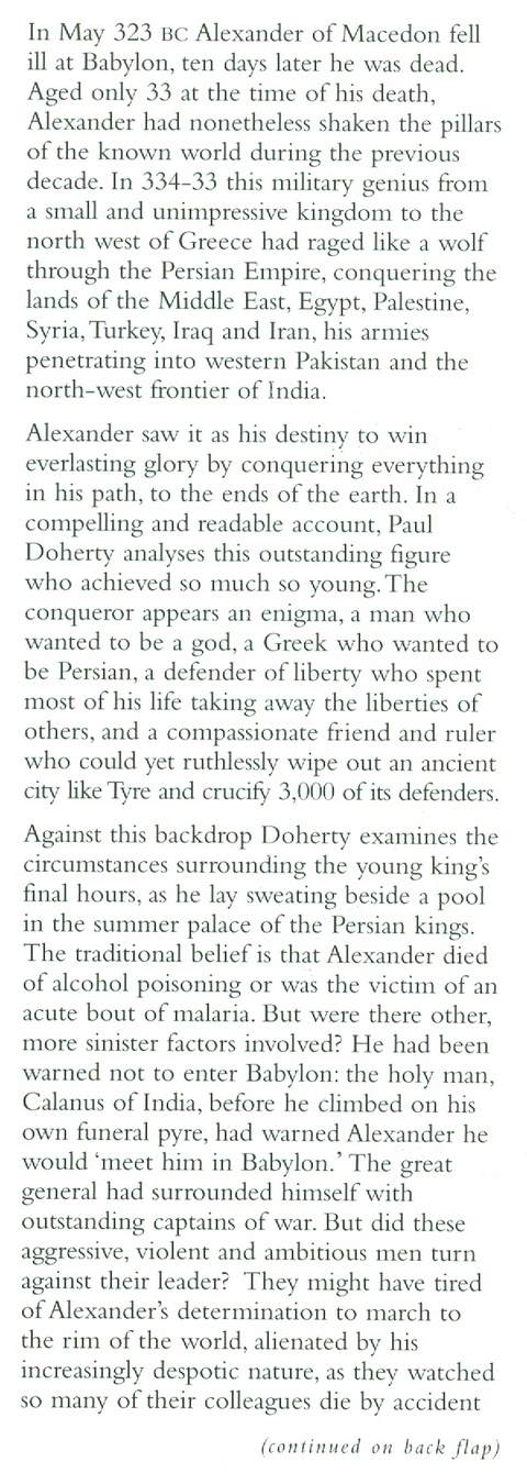 The Death of a God – What – or Who – Really Killed the Young Conqueror of the Known World? chronology, biographical notes, bibliographical notes, index, xx & 236 pp, red boards in d/w, closed edges of pages a little spotted, margins of pages slightly darkened, bottom corner of half-title creased, otherwise in very good condition, Constable 2004