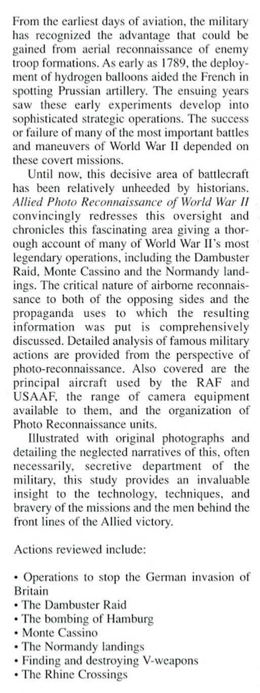 Books > Aircraft > ALLIED PHOTO RECONNAISSANCE OF WORLD WAR TWO
