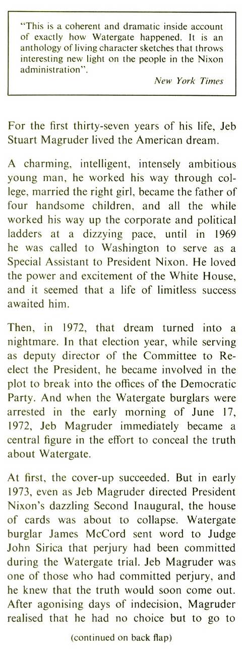One Man’s Road to Watergate, index, x & 338 pp, blue boards in d/w, slight tear at top of spine of d/w neatly repaired, red area of spine of d/w very faded, otherwise in very good condition, Hodder and Stoughton 1974