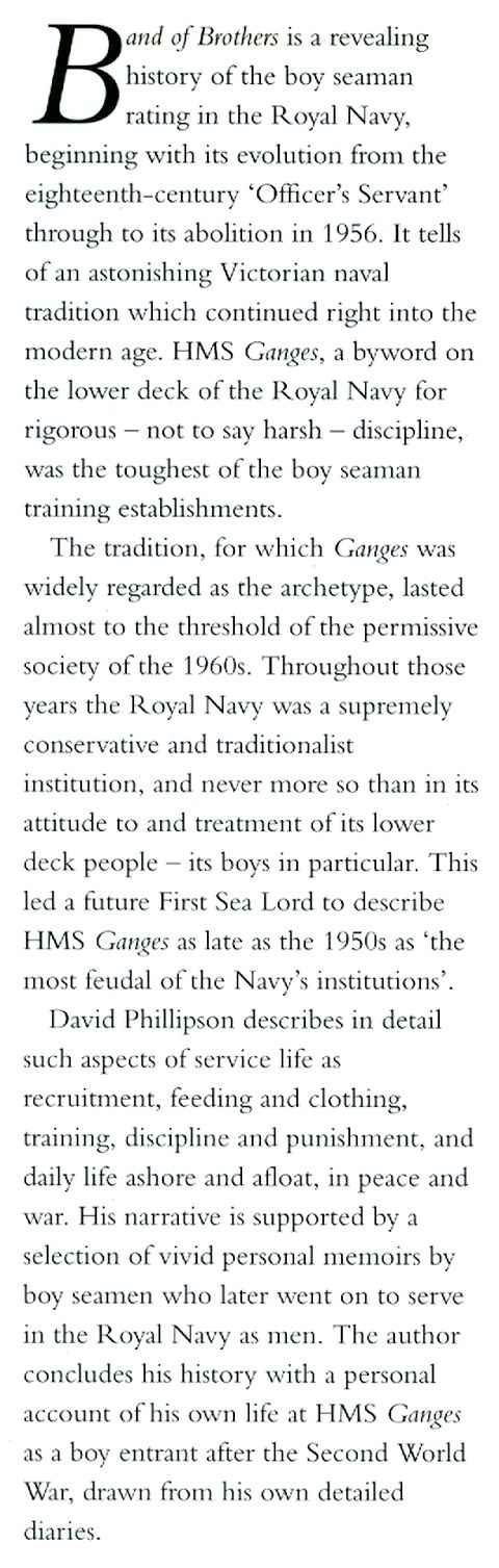 Boy Seamen in the Royal Navy 1800-1956, b&w illustrations from photographs, paintings and engravings, notes, bibliography and index, x & 150 pp, red boards in d/w, in fine condition, Sutton Publishing (Stroud, Gloucestershire) 1996