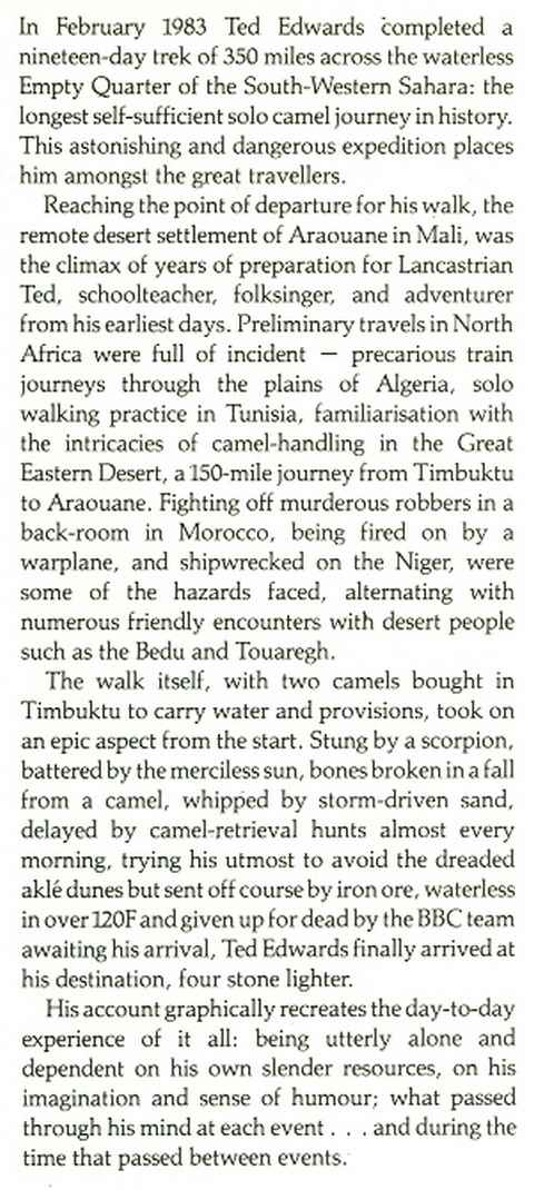 That is, solo apart from two camels - see the description (below) from the dustwrapper flap.