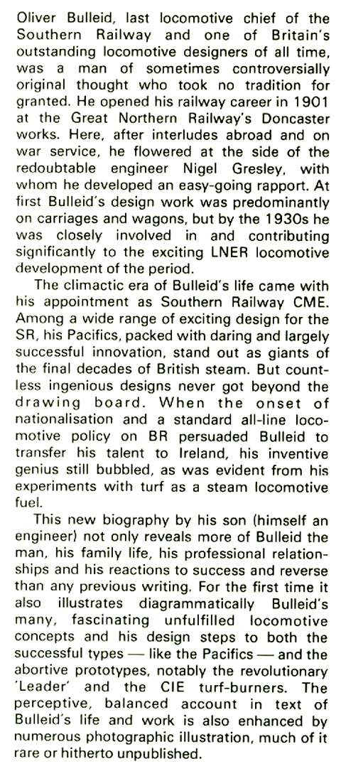 Growing up, as I did, close to the Brighton line, his locomotives were part of my childhood. I had no idea he went on to design and make a perfectly satisfactory peat-powered locomotive for the Irish Railways . . . . See the description (below) from the dustwrapper flap.