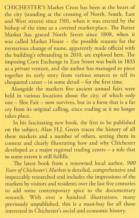 900 Years of Chichester’s Markets, frontispiece and numerous b&w illustrations from engravings, photographs, reproductions of old documents and extracts from old maps, bibliography, index, xii & 164 pp, brown boards in d/w, as new, Phillimore & Co. (Andover, Hampshire) 2011