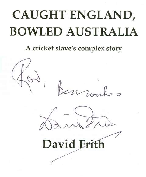 A Cricket Slave’s Complex Story, Signed by the author on the title page, very numerous b&w photographic illustrations, index, 366 pp, dark blue boards in d/w, bottom corners of boards very slightly bumped, small area at top of front cover of d/w where a label has been removed, otherwise in very good condition, Eva Press 1997