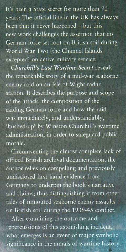 That is, the German raid on the Isle of Wight. See below the descriptions from the dustwrapper flap and the rear of the dustwrapper.