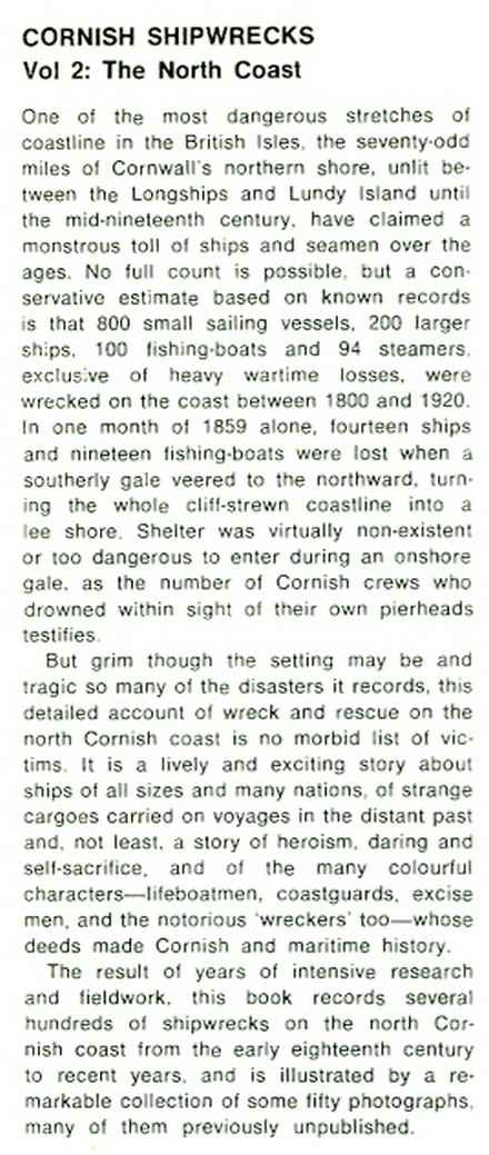 Volume 2 : The North Coast, illustrations from b&w photographs, maps, bibliography, index of ships and general index, 236 pp, blue boards in d/w, top and bottom of d/w chipped, d/w a little damp-marked (not affecting book), some biro lines in margins and biro list on rear free endpaper, some foxing, but on the whole a good usable copy of a scarce book, David & Charles (Newton Abbot, Devon) 1970