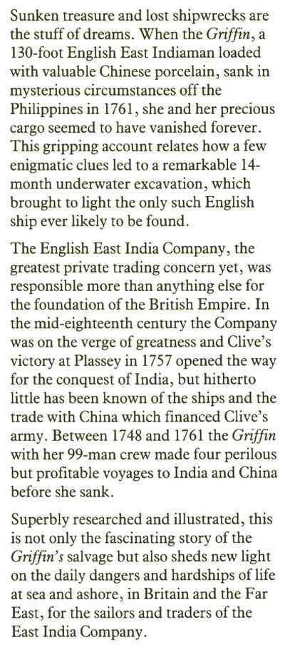 B&w illustrations from old prints and drawings, portraits and modern photographs, maps, plan of the wreck as discovered, appendix listing the ship’s crew on its final voyage, bibliography & index, xii & 178 pp, green boards in d/w, pages browned, otherwise in very good condition, Weidenfeld & Nicolson 1990