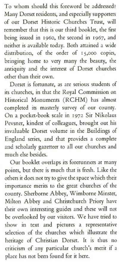 Very numerous illustrations from b&w photographs, double-page location map, 64 pp, sewn paperback, in very good condition with uncreased spine, Dorset Historic Churches Trust (Dorchester, Dorset) 1975