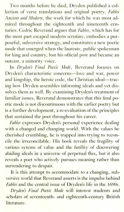 Books > Literary Criticism > DRYDEN'S FINAL POETIC MODE