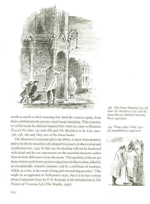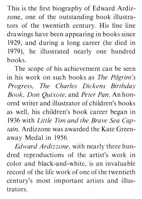 Artist and Illustrator, very numerous illustrations (some in colour) from Ardizzone’s drawings, sketches, and letters (see specimen page below), numerous illustrations from lithographs and drawings by other artists, bibliography, index, 192 pp, blue cloth in d/w, small tears to top of spine of d/w neatly repaired, corners of d/w a little creased and torn, small splashes to closed edges of pages (faint stain extending to margin of pages), otherwise in very good condition, Schocken Books (New York) 1980