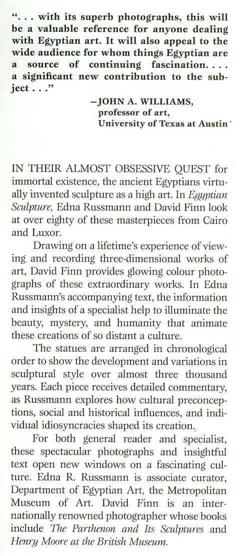 Cairo and Luxor, Photographs by David Finn, very numerous colour photographic illustrations, location maps, chronological table, glossary, bibliography, index, xii & 230 pp, oatmeal cloth in d/w, small scratch to rear of d/w, otherwise in near fine condition (but see note below), British Museum Publications 1989