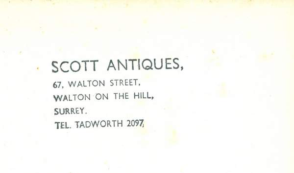 This was clearly a reference book for an antique dealer – see below the previous owner’s stamp on the front endpaper.  A Google search reveals that 67 Walton Street is now the ‘village ironing shop’!