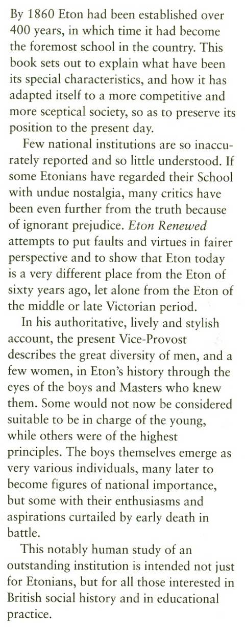 A History from 1860 to the Present Day, b&w illustrations from photographs, portraits, sketches and drawings, maps of school in 1902 and 1993 on endpapers, footnotes, glossary, notes, bibliography, index, xiv & 337 pp, dark blue boards in d/w, top edge of d/w very slightly creased with very small tear at top of spine to cover and d/w, covers of d/w darkened (see picture), otherwise in very good condition, John Murray 1994
