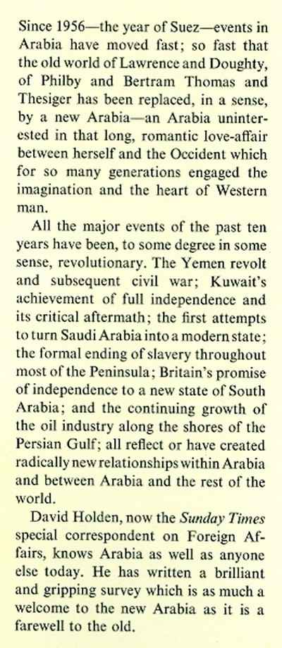 Things were changing in Arabia in the 1960s too . . . . See the description (below) from the dustwrapper flap.