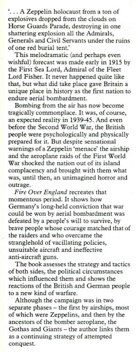 The German Air Raids in World War I, Illustrations from b&w photographs and drawings, double-page map showing raid of 2/3 Sept 1916, bibliography, appendix giving details of air raids, index, signed inscription from author on front flyleaf, blue boards in d/w, Secker & Warburg 1982