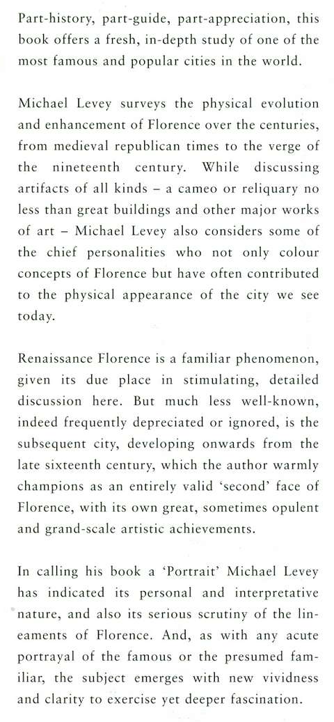 A Portrait, very numerous illustrations (mostly in b&w, a few in colour) from paintings, sculptures and photographs, chronology, maps showing the city in 1500, 1700 and 1900, genealogical table of the Medici family, bibliography and index, xxx & 498 pp, black boards in d/w, presentation inscription on endpaper, top edge of d/w a little creased, slight spotting to closed top edge of pages, otherwise in very good condition, Jonathan Cape 1996
