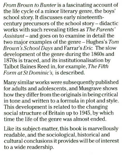 The Life and Death of the School Story, b&w illustrations reproduced from the books dealt with, bibliography, index, viii & 275 pp, brown boards in d/w, base of spine a little bumped, closed edges and margins of pages just starting to brown, otherwise in very good condition, Routledge & Kegan Paul 1985