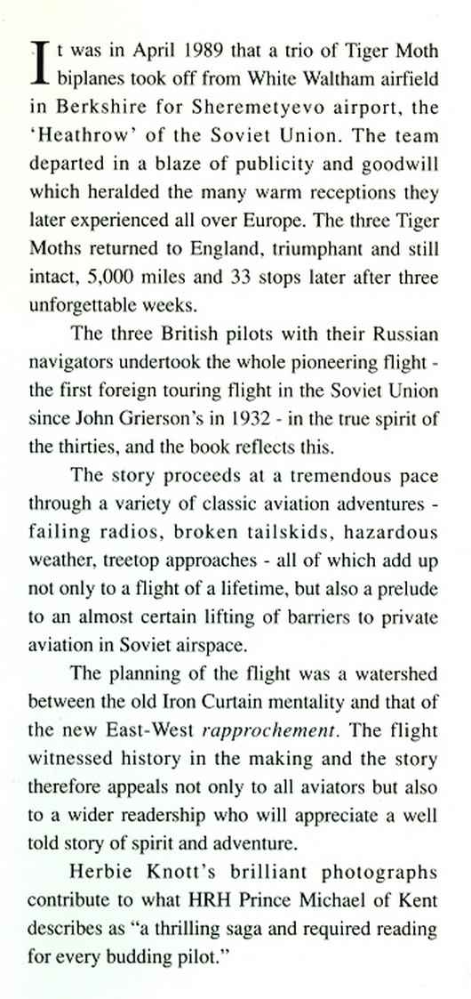 Moscow and Back by Tiger Moth, with Photographs by Herbie Knott, very numerous illustrations from colour and b&w photographs, cartoons, maps and diagrams, 160 pp, green cloth in d/w, edges of d/w slightly creased, inscription on front endpaper, otherwise very good, Quiller Press 1990