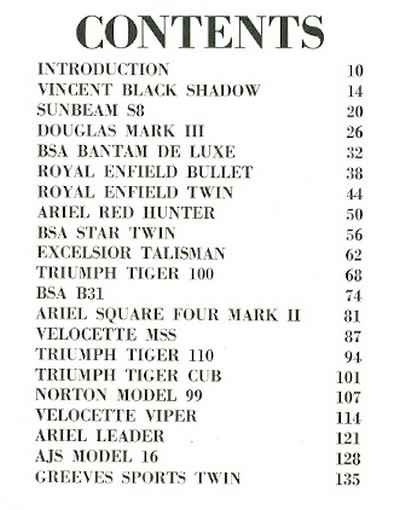 See the contents list. Each bike has a short (two-page) history, then the contemporary road-test from “The Motor Cycle” is reproduced.