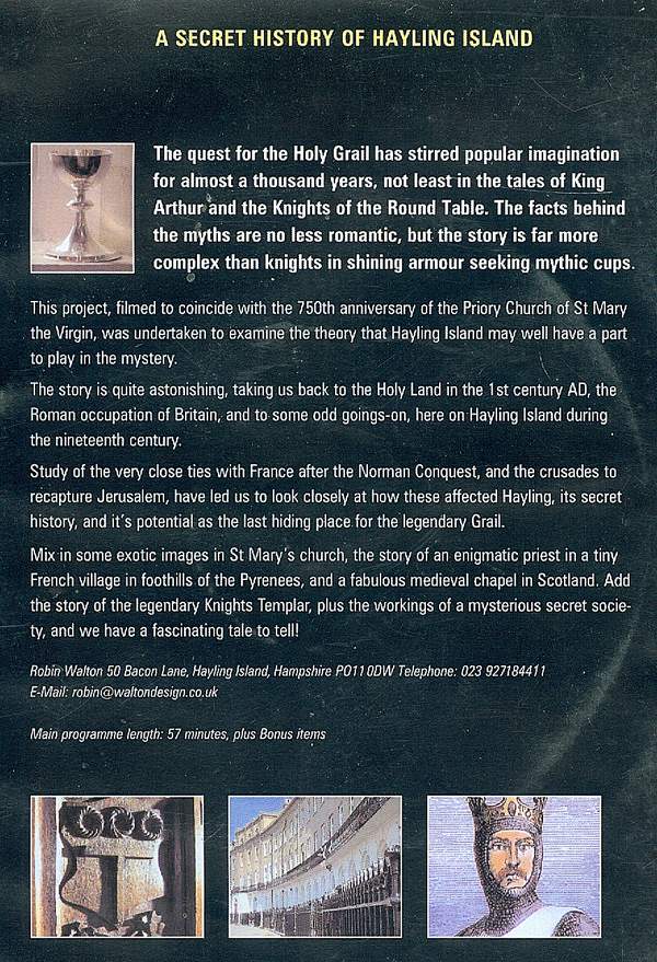 Secret Island of the Holy Grail?  DVD – no region number stated, but I suppose 2, in large DVD box 19.1 x 13.5 cm, plays for about an hour, a few light scratches on playing surface, but it plays OK on my computer, Robin Walton (Hayling Island, Hampshire) 2006