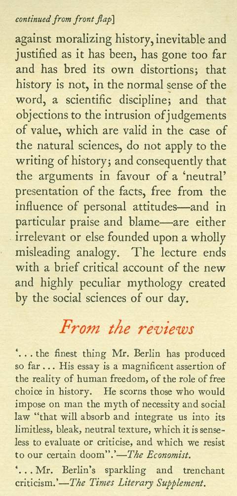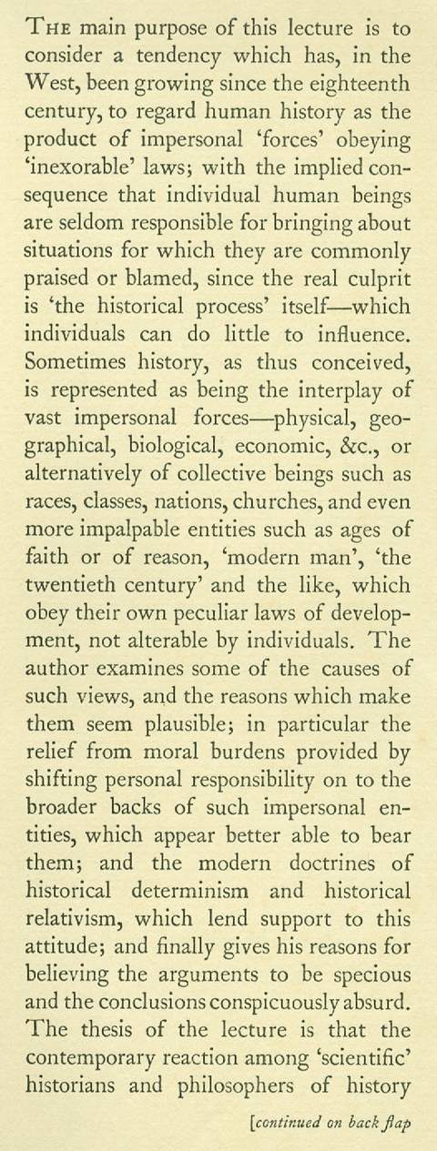 Auguste Comte Memorial Trust Lecture, No. 1, Delivered on 12 May 1953 at the London School of Economics and Political Science, 80 pp, dark blue boards in d/w, front cover of d/w and corner of front paste-down damp-marked (not affecting the book itself), d/w a little chipped and torn at extremities, endpapers browned, otherwise in good condition, Oxford University Press 1955