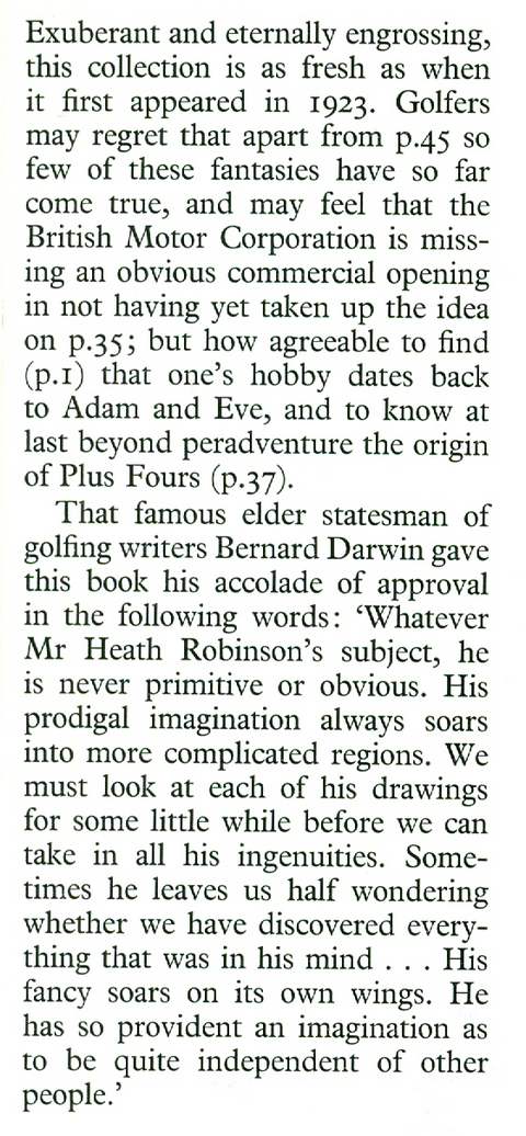 Facsimile reprint of 1923 edition, album of b&w cartoons (see specimen page below) with introduction by the golf writer Bernard Darwin, x & 50 pp, black boards in d/w, spine and edges of d/w sunned, edges of d/w a little creased with very small tear at fore-edge, otherwise in very good condition, Gerald Duckworth & Co 1975