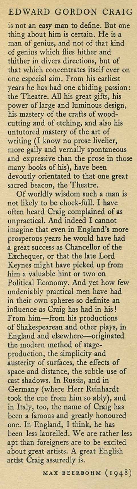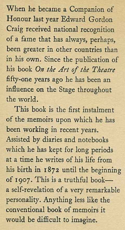 Son of Ellen Terry, and one of the most influential stage designers of his day. See below the description, and short biography from Max Beerbohm, from the dustwrapper flaps.