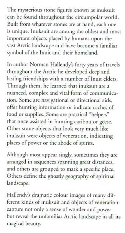 Ceremonial and symbolic cairns set up in the Arctic regions of Canada by the Inuit people. See the description from the flap inside the book’s front cover.