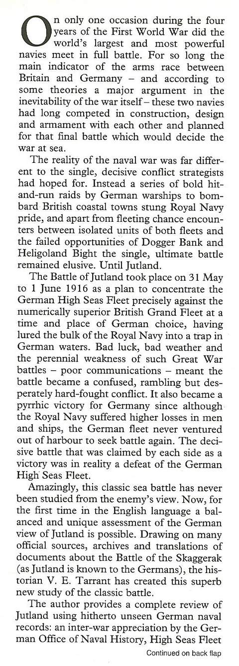 A New View of the Great Battle, 31 May 1916, 81 line-drawn plans or diagrams giving either ships’ positions at times throughout the battle or plans of British and German warships (side view and top view), extensive appendices including translations of German radio transmissions during the battle, details of the opposing fleets and damage sustained by both sides, notes, bibliography & index, 318 pp, glazed pictorial boards in d/w, small tear to rear of d/w neatly repaired, otherwise in very good condition, Brockhampton Press 1999