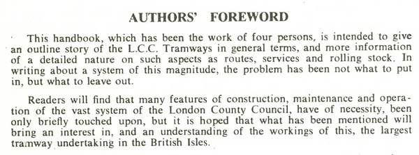 See below the extract from authors’ foreword. It is slightly strange to call the book a ‘handbook’ when the last such tram ran in July 1952 . . . .