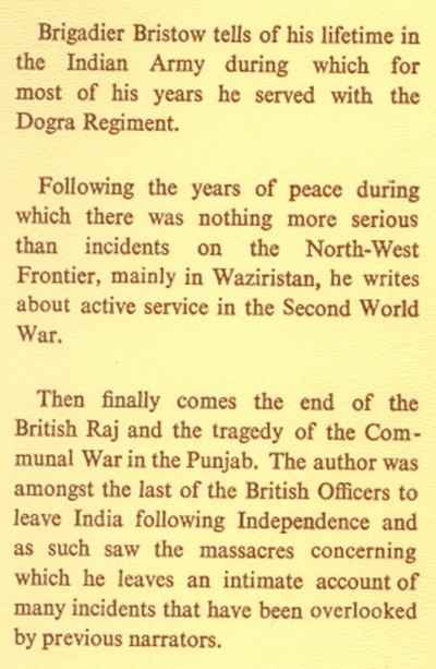 Served with the Dogra Regiment on the North-West Frontier, during the Second War in Singapore and Burma, and after the War in the Punjab. See also (below) the description from the dustwrapper flap.