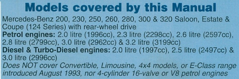 Haynes are to be congratulated for keeping so many of these manuals in print, but most of the manuals still in print are only available in a paperback edition, which is rather less durable than the wipe-clean cover of the original hardback edition. This particular manual for the 124 series Mercedes is still in print in paperback at £17.24.