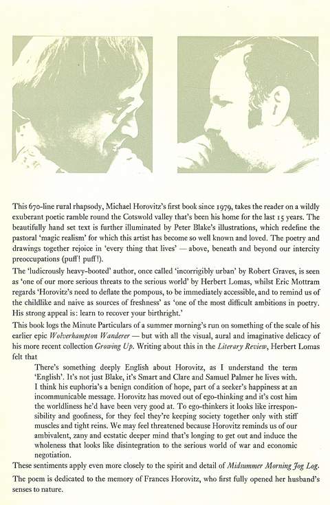 With drawings by Peter Blake, four full-page b&w drawings and one page heading, 40pp in all, sewn paperback, very slight crease to spine, otherwise in very good condition, Five Seasons Press (Madley, Herefordshire) 1986