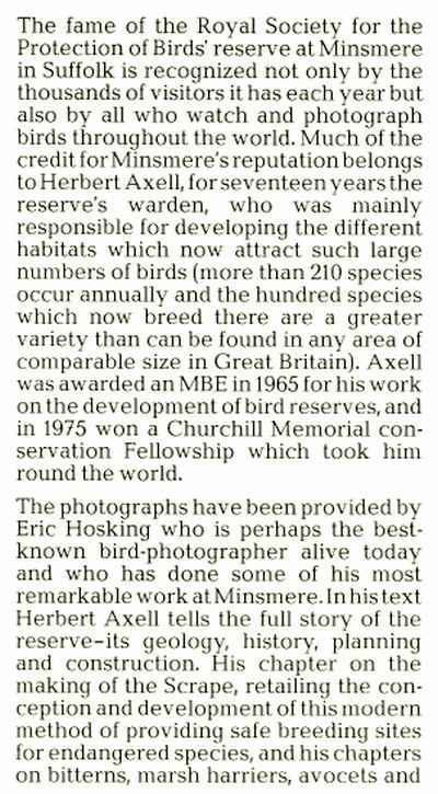 Portrait of a Bird Reserve, signed by both authors on the title-page, very numerous illustrations from colour and b&w photographs and line-drawings, migration maps, map of reserve on endpapers, appendix listing bird species seen at the reserve, bibliography & index, 256 pp, blue cloth in d/w, one-inch tear to d/w near base of spine, otherwise in very good condition, Hutchinson 1977