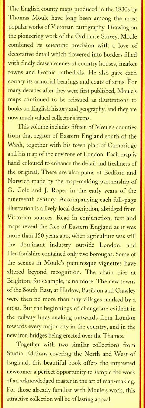 The East and South-East of England, coloured reproductions of the county maps (see specimen page below) with the author’s short description on the facing page, bibliography, 48 pp, red boards in d/w, top edges of d/w a little creased, otherwise in very good condition, Bracken Books 1994