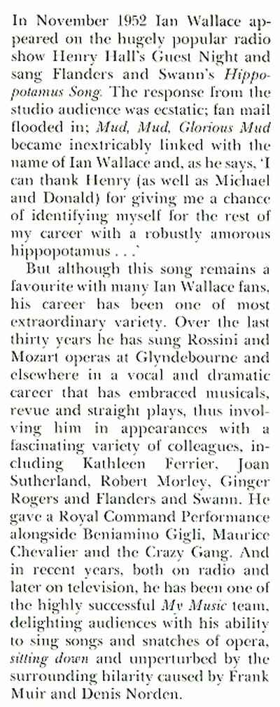 One of those characters who defy categorisation – while he became famous singing the comic songs of Flanders and Swann (hence the title!), he went on to sing in opera, stage musicals, revues and “straight” plays, and latterly appeared frequently on radio and TV.
