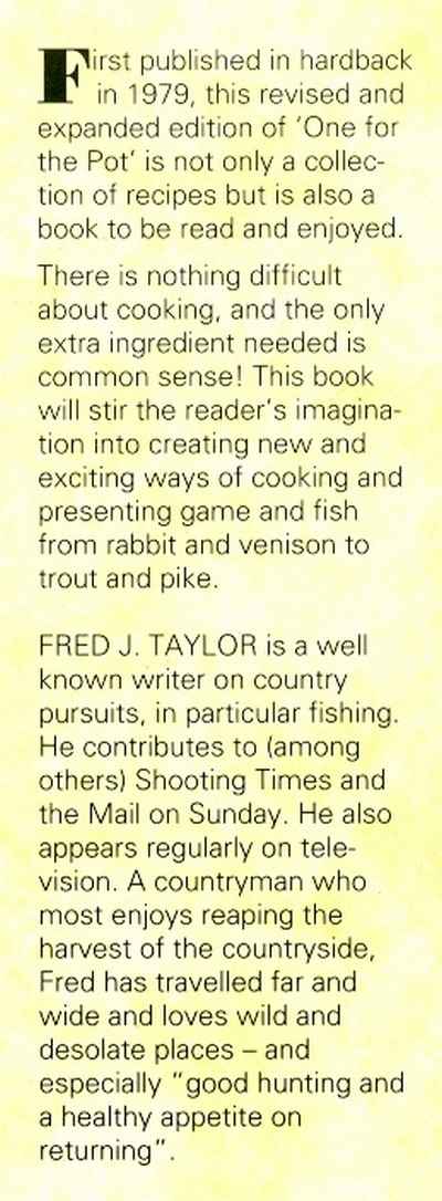 Fred Taylor’s Game and Fish Cookbook, 2nd (expanded) edition, illustrations from line-drawings, signed inscription from the author on title-page, xiv & 139 pp, paperback, in very good condition, Ashford, Buchan & Enright (Leatherhead, Surrey) 1992