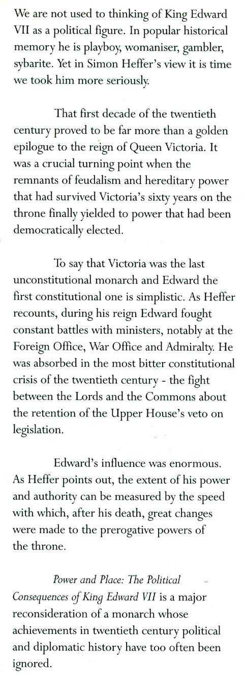 The Political Consequences of King Edward VII, b&w photo illustrations, bibliography, notes and index, x & 342 pp, blue boards in d/w, d/w a trifle rubbed and with small tears to top edge neatly repaired, otherwise in very good condition, Weidenfeld & Nicolson 1998