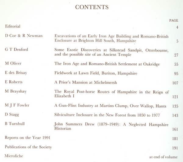 Volume 48, very numerous b&w illustrations from photographs, artefacts, line-drawings, reproductions of old documents, cross-sections, plans and reconstructions, very numerous diagrams, graphs and statistical tables in text, maps, bibliography for each essay, 235 pp, sewn paperback, top edge of closed pages apparently partially sprayed with orange spray paint (!),corners a little bent, otherwise in very good condition, Hampshire Field Club and Archaeological Society 1993