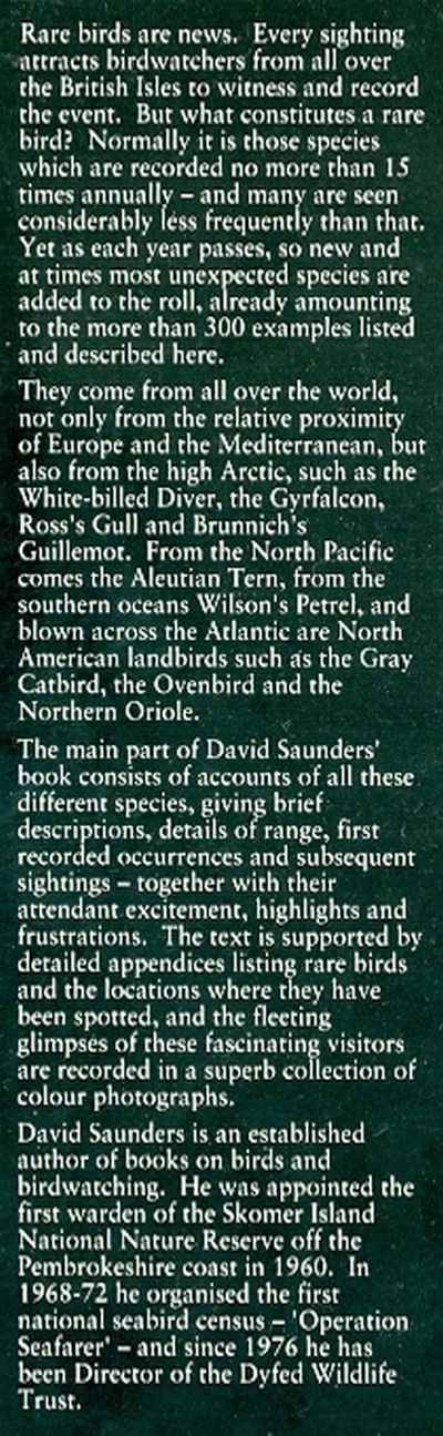 A Personal Survey of Over 300 Unusual Visitors, illustrations from colour photographs & sketches and b&w line-drawings, appendix listing rare birds sighted, bibliography & indexes of birds with their Latin names, 224 pp, grey boards in plastic-sleeved d/w, fine condition, Patrick Stephens Ltd (Yeovil, Somerset) 1991