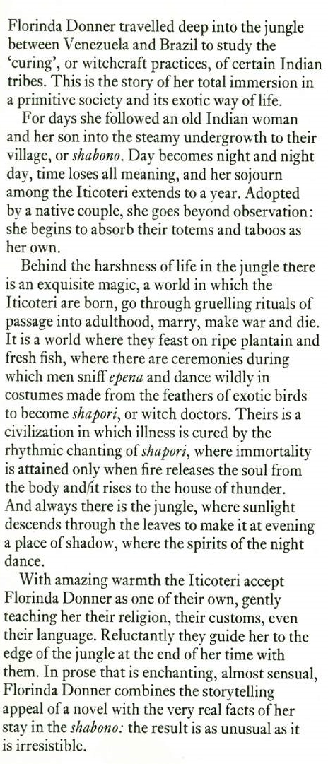 A Visit to a Remote and Magical World in the Heart of the South American Jungle, glossary, xiv & 305 pp, green boards in d/w, top edge of d/w very slightly creased, pages uniformly browned, otherwise in very good condition, Bodley Head 1982