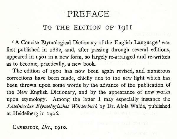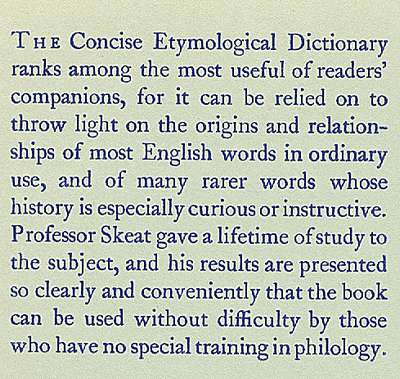 Whereas Oxford University Press have kept Skeat’s larger Etymological Dictionary in print, at a mere £145.00, their website makes no mention of this Concise Etymological Dictionary.