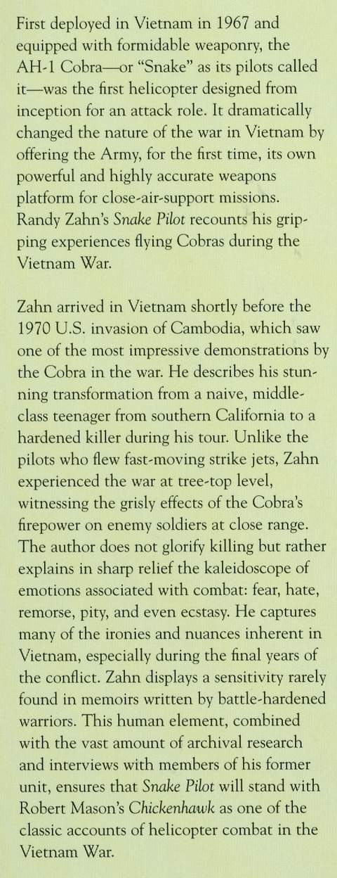 Flying the Cobra Attack Helicopter in Vietnam, b&w photo illustrations, map, glossary, list of sources and index, x & 283 pp, black boards in d/w, tiny patch at base of rear cover of d/w where glaze is delaminating, spine of d/w a trifle scratched, otherwise in very good condition, Brassey’s (Washington, D.C., USA) 2003