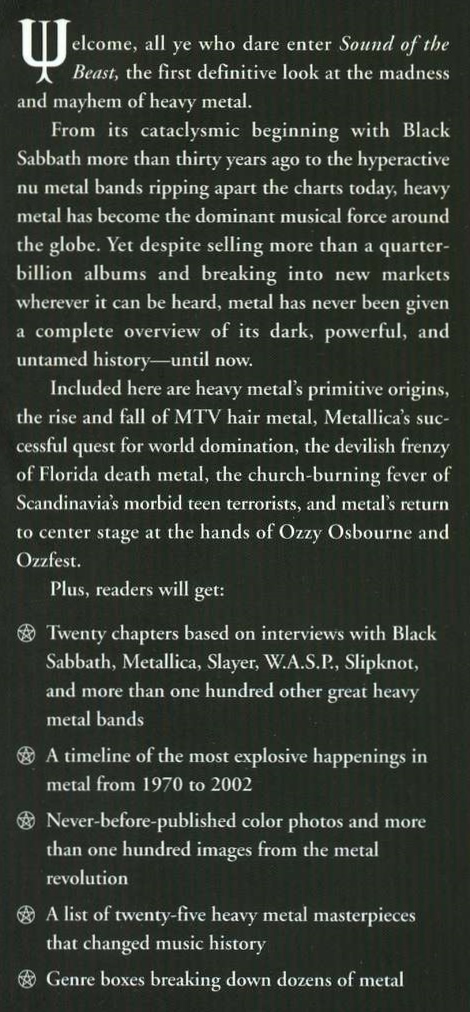The Complete Headbanging History of Heavy Metal, very numerous b&w illustrations from photographs, flyers and line-drawings, 16 pp colour section, chronology, appendices (including a list of the best 25 metal albums and index of genre boxes), index, xii & 386 pp, purple boards with red spine, in d/w, top and bottom edges of d/w a little creased, top of spine a trifle bumped, a couple of score marks to top closed edge and fore-edge of pages resulting in some creasing to margins of these pages, otherwise in very good condition, HarperCollins Publishers (New York) 2003