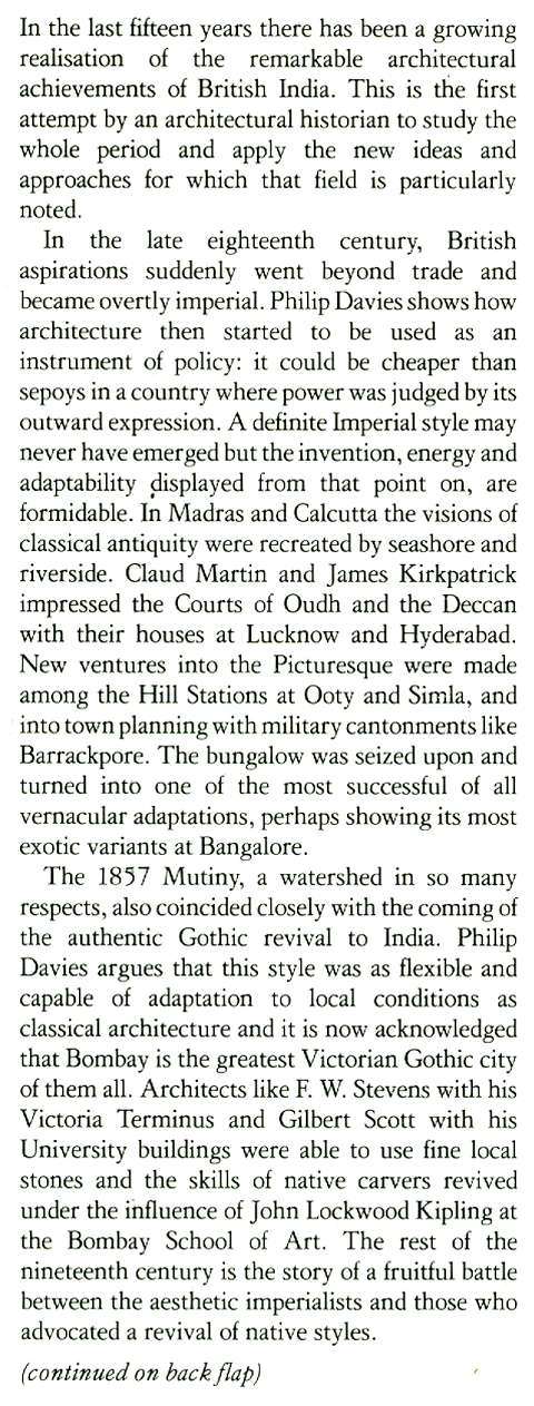 British Architecture in India, 1660 to 1947, very numerous b&w illustrations from engravings, paintings and photographs, architects’ plans and designs, glossary, short biographical details of principal architects and engineers, notes, bibliography and index, 272 pp, brown boards in d/w, spine of d/w a little sunned, otherwise in very good condition, John Murray 1985