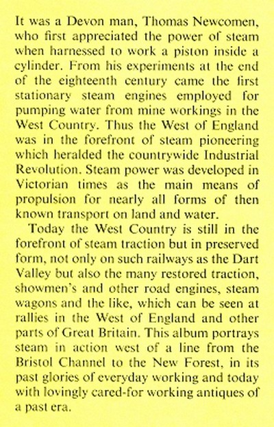 Arguably steam power started with the pumping engine built by Devon man Thomas Newcomen in 1712, and this album shows all aspects of preserved steam power in the West of England, including steam fairground organs, steam ships and even models, as well as the expected traction engines and locomotives.